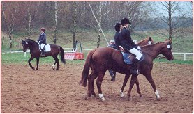 An vielen Basis- und Aufbauprüfungen konnten wir teilnehmen. Leider können es nie genug sein. Da wir kein Turnierstall sondern ein Touristikunternehmen sind, welches sein Geld einmal mehr in der Grünen Saison verdienen muß, sind uns ein wenig die Hände gebunden und so gerne man manchmal auch möchte.. Mehr als eine Nennung mußte wir zurückziehen, weil das Geldverdienen vor dem Vergnügen steht. ![]() Januar/ üben auf dem heimischen Platz.