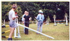 Letzte Absprachen zum Platz - zwei Hindernisse wurden aufgrund der engen Wendungen rausgestrichen. ![]() Es wurde Pferd und Reiter Zeit gegeben sich den Parcour in Ruhe anzusehen. Der Boden gut, aber ansteigend und abfallend vom Gelände her, die Hindernisse turniertypisch und mit einem gewissen Schwierigkeitsgrad.