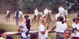 Webcam | 30. Juni 2001 Der Westernhof Carlsruhe e. V. veranstaltet seinen 1. Reitertag. Wie viele andere Vereine oder Reiterhöfe erhielten auch wir eine Ausschreibung zu dieser Veranstaltung. Das einzige Handycap - es war Heuernte und die Presse sollte an diesem Tag kommen. Was tun? Na logisch findet sich immer irgend ein Weg - unsere Lösung - der Chef blieb diesmal zu Haus ;-) Ob das wohl gut geht ??? Seht selbst wie es lief.