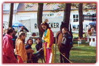 Webcam | 5. Mai 2001 An diesem Tage fand das erste Dierhäger Frühlingsfest, orgarnisiert vom Stammtisch der Gastronomen, in Dierhagen statt. Das fröhliche Treiben wurde mit einem zünftigen Frühschoppen eröffnet. Es gab eine Grillstrecke mit Wildschwein am Spieß, Kesselgulasch, Räucherfisch sowie anderen Spezialitäten. Eine Austellung von Bildern der Region, ein Imkerstand, Porzellanmalerei, ein Schießstand sowie der Verkauf von Blumen und Gestecken gaben dem Fest den nötigen Flair. Unser Reiterhof war an diesem Tag mit zwei Pferden und einer handvoll Führpersonal auf dem Frühlingsfest vertreten. Es war eine wirklich gelungene Veranstaltung und wird laut Zustimmung aller Beteiligten, nunmehr alljährlich stattfinden. ![]() ![]()