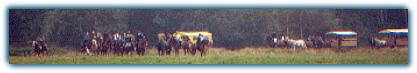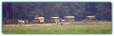 Ein Blick vom Kutschbock auf die nachfolgenden Wagen.