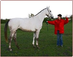 Es sollten mindestens drei Generationen sein [Auszug aus dem Pferdejournal 03/2005, Beitrag von Kristin Romanowski und Dr. Siegfried Hoffmann] Allgemein kann von einer Stutenfamilie gesprochen werden, wenn mindestens drei Generationen, also Großmutter, Mutter und Tochter, in einem Zuchtbuch aktiv sind. Die erste bekannte Stute der Familie wird als Stammstute bezeichnet. Zumeist handelt es sich dabei um eine zucht- bzw. leistungsbewährte Stute. Sie hat in der Regel zu einer Verbreitung der Familie beigetragen, so daß die Familie ihren Namen trägt. Zu einer Stutenfamilie wird nur die weibliche Nachzucht einer Stammstute gezählt, die dieser zweifelsfrei zuzuordnen sein muß. Stutenstämme gibt es viele, denn jedes Pferd besitzt eine Abstammung. Wirklich erfolgreiche Stutenstämme sind nicht so häufig. Ebenso sind jene Stutenstämme hervorzuheben, die eine große Verbreitung gefunden haben. Eine einzelne Leistungsstute ohne erfolgreiche Nachzucht oder nennenswerte Verbreitung in der Population ist noch keine Familienbegründerin. Da wir uns bei der Eintragung fürs Filmen entschlossen haben, gibts leider keine aktuellen Fotos. Aber ein paar Tage vorher haben wir noch einmal kräftig fotografiert. Der Countdown läuf. Nur noch 3 Tage bis zur Eintragung. Letzte Proben zum Aufstellen, Laufen und Einflechten. Wie kommt die Stute am besten zur Geltung? Gut vorbereitet ist die halbe Miete ;-) | |||||||||||||||||||||||||||||