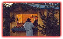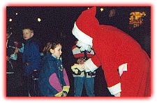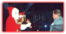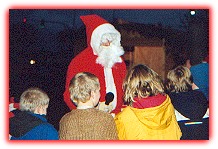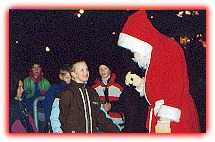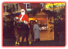 Dezember 2001 Wiedereinmal ist es soweit. Der 2. Dierhäger Weihnachtsmarkt hat für Groß und Klein seine Pforten geöffnet. Ob Bilder, Keramik, Platten oder Kunstgewerbe, ![]() Kaffee, Kuchen, Plätzchen, Kekse, Mutzen, heißer Tee, Grog, Glühwein ![]() oder Hausartikel erwählter Firmen. Alles war willkommen. Aber ganz besonders natürlich der Weihnachtsmann. ![]() Hoch zu Roß im Schoße der Dämmerung kam er dieses Jahr zu den Dierhäger Kindern. Und Die staunten nicht schlecht. ![]() Waren überrascht, daß ihr Weihnachtsmann nicht nur mit seinem Schlitten fahren, sondern auch reiten kann. ![]() Der Bürgermeister ließ es sich natürlich nicht nehmen, diesen besonderen Gast persönlich zu begrüßen. ![]() Und dann gings auch schon los. Strahlende Kinderaugen warteten auf ihren Auftritt. ![]() Auch wenn bei großem Herzklopfen das eigentlich so hart geübte Gedicht plötzlich im Ansatz steckenblieb, lobte der Weihnachtsmann sie alle. Ein kleiner Hauch von Vorfreude huschte über die Gesichter der großen und kleinen Besucher. An dieser Stelle ein großes Dankeschön an die Gewerbetreibenden von Dierhagen, denn nur durch ihre Initiative gibt es diesen wunderschönen kleinen Weihnachtsmarkt.